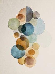 abstract watercolor in greens blues browns vertical